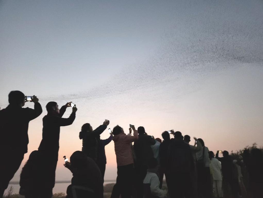 游客在拍摄“鸟浪”奇观。新华社发
